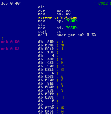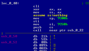 We move the cursor to offset 0x50 and press C to inform IDA that there is now code at that location.