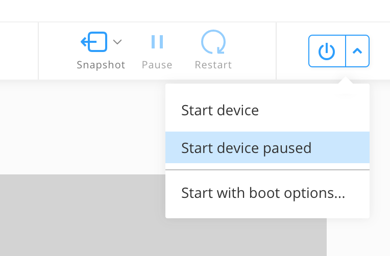 - power on the device with Start device paused