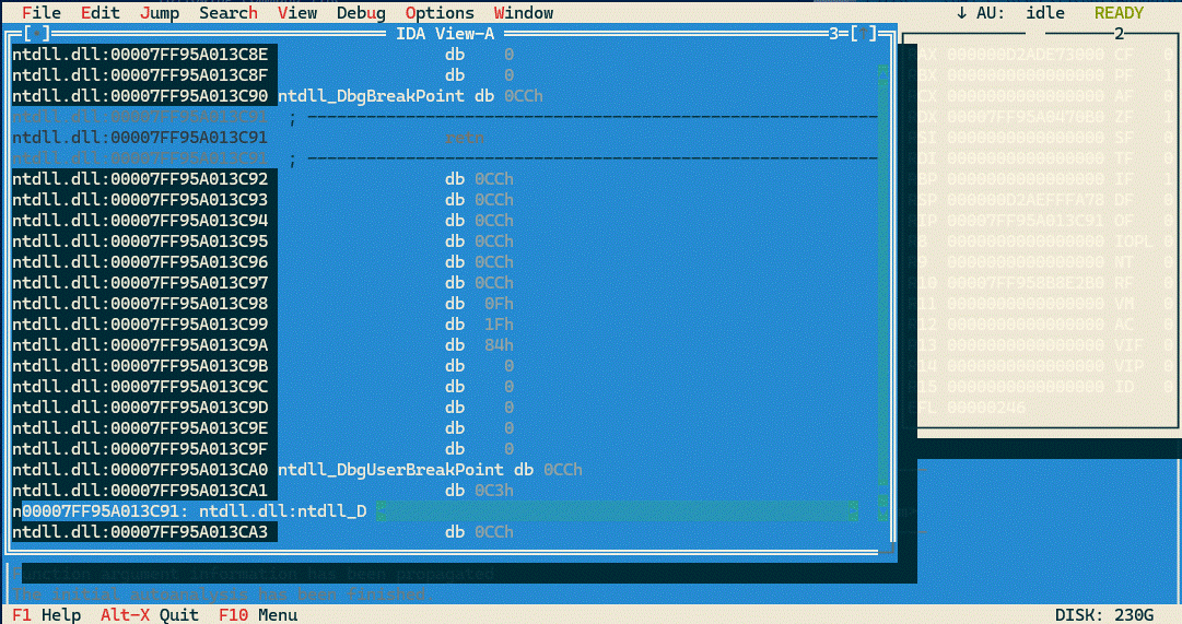and IDA for Linux is started with the following command line